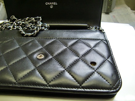 シャネル チェーンウォレット (タバコ焦げ穴跡 / シープスキン) ↓施工後↓