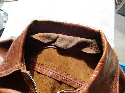 染革ビンテージジャケット(襟部/劣化割れ・皮脂汚れ) ↓施工後↓